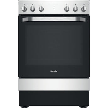 This Hotpoint freestanding 60x60 Cooker features: 4 radiant plates. Inox colour. Electric power supply. Multi function cooking method. 60cm width.