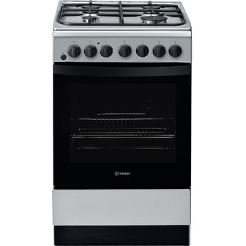 This Indesit freestanding 50x60 Cooker features: 4 gas burners. Inox colour. Electric power supply. Conventional cooking method. 50cm width.